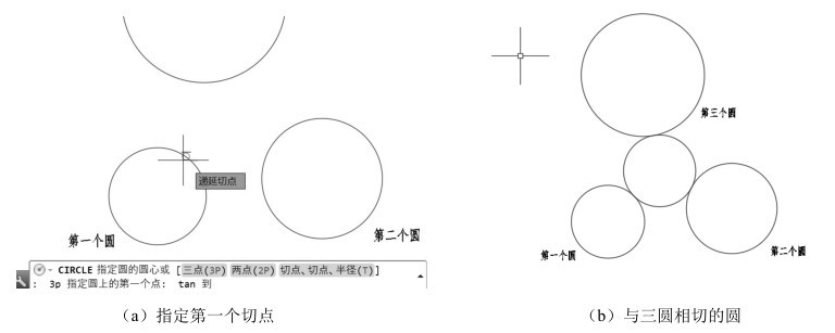 该种创建圆的方法先指定与已有对象相切的两个切点,再指定圆的半径。