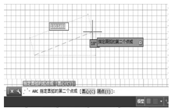 该种创建圆弧的方法是先指定圆弧的起点和圆心,再指定端点绘出圆弧,如图2-28所示。