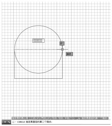 然后分别指定圆直径方向上的两点如图2-21所示,即可绘制出圆。