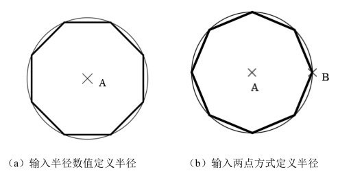 这样,系统便绘制出以AB为边的正多边形。如图2-43所示,以第一点到第二点的连线为边,按逆时针方向绘制多边形,若两点的顺序相反,则绘制的多边形的方向也相反。
