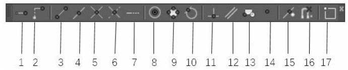 14—捕捉到节点:可捕捉点对象,此功能对于捕捉用DIVIDE和MEASURE命令插入的点对象特别有用。