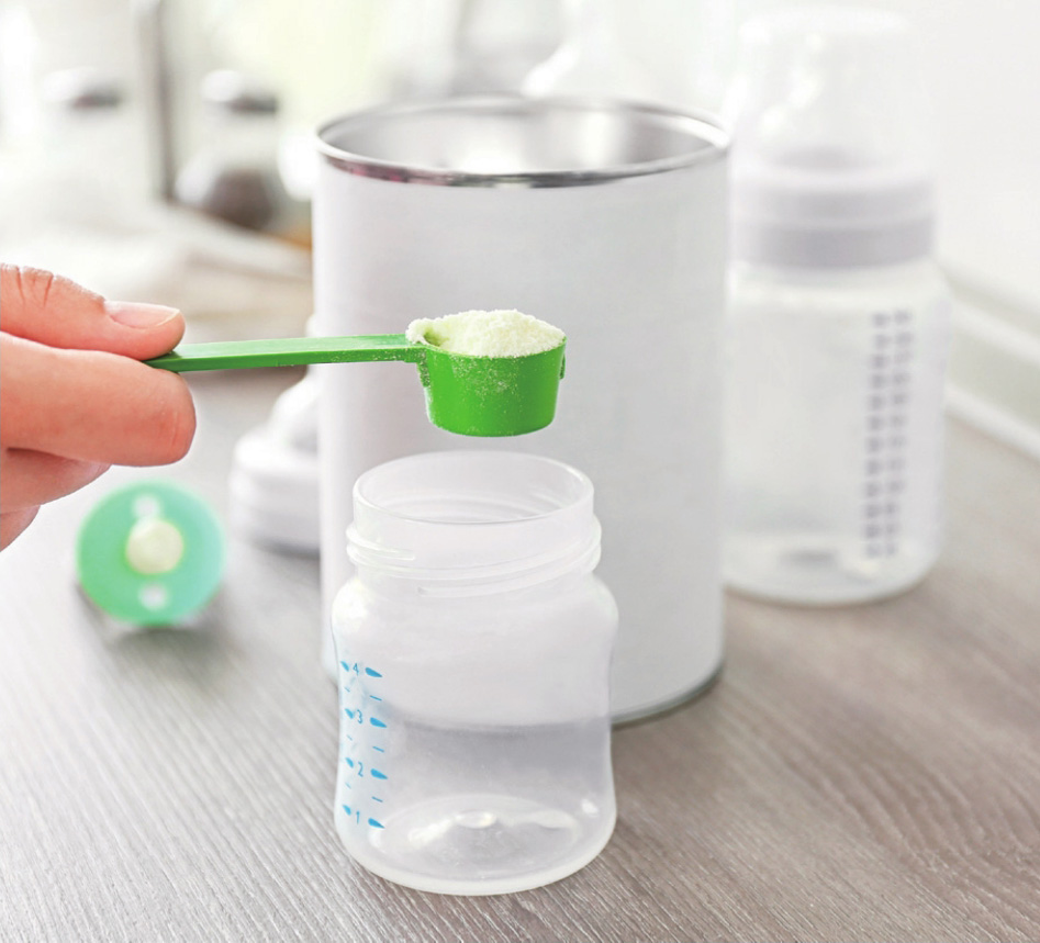 仔细阅读配方奶粉包装上的说明,看看需要用多少水和多少奶粉调配。
