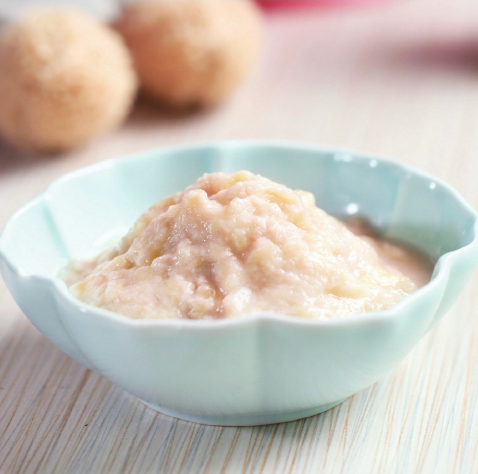 1.香蕉剥皮,用小勺捣碎,研成泥状。