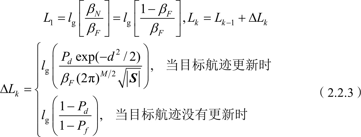 航迹置信度由递归积累产生,每个航迹的置信度等于它上一次的值加上一个置信度增量Δ L k ,即初始值为