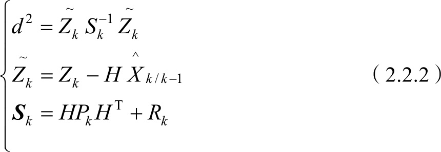 目标点迹与航迹数据关联可能是通过计算可能目标状态值与预测的目标状态值之间的归一化距离 d 2 来进行的。