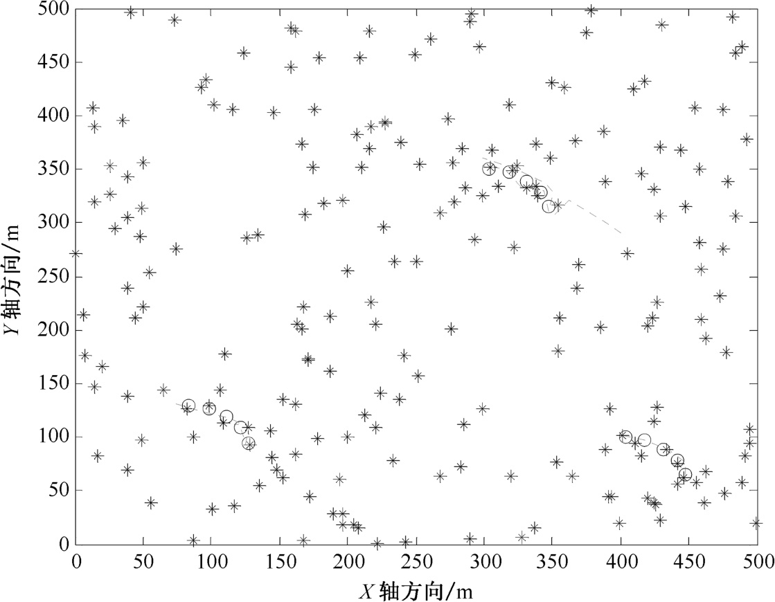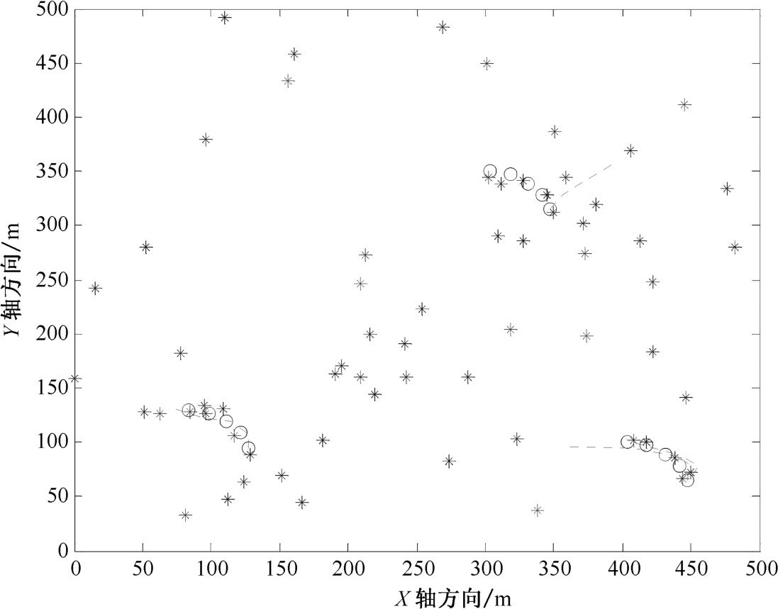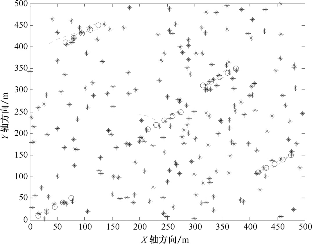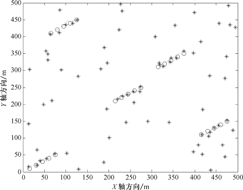 图2.13 密集杂波环境下改进MHT算法航迹起始图