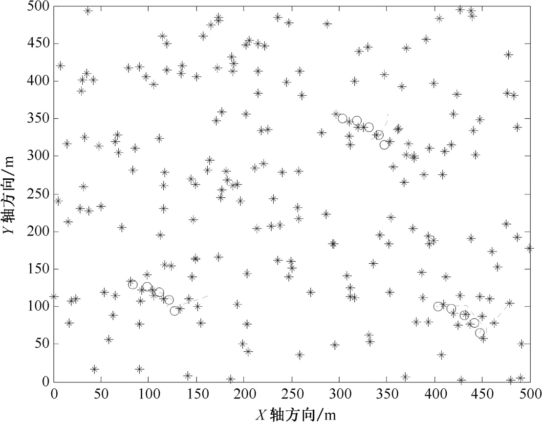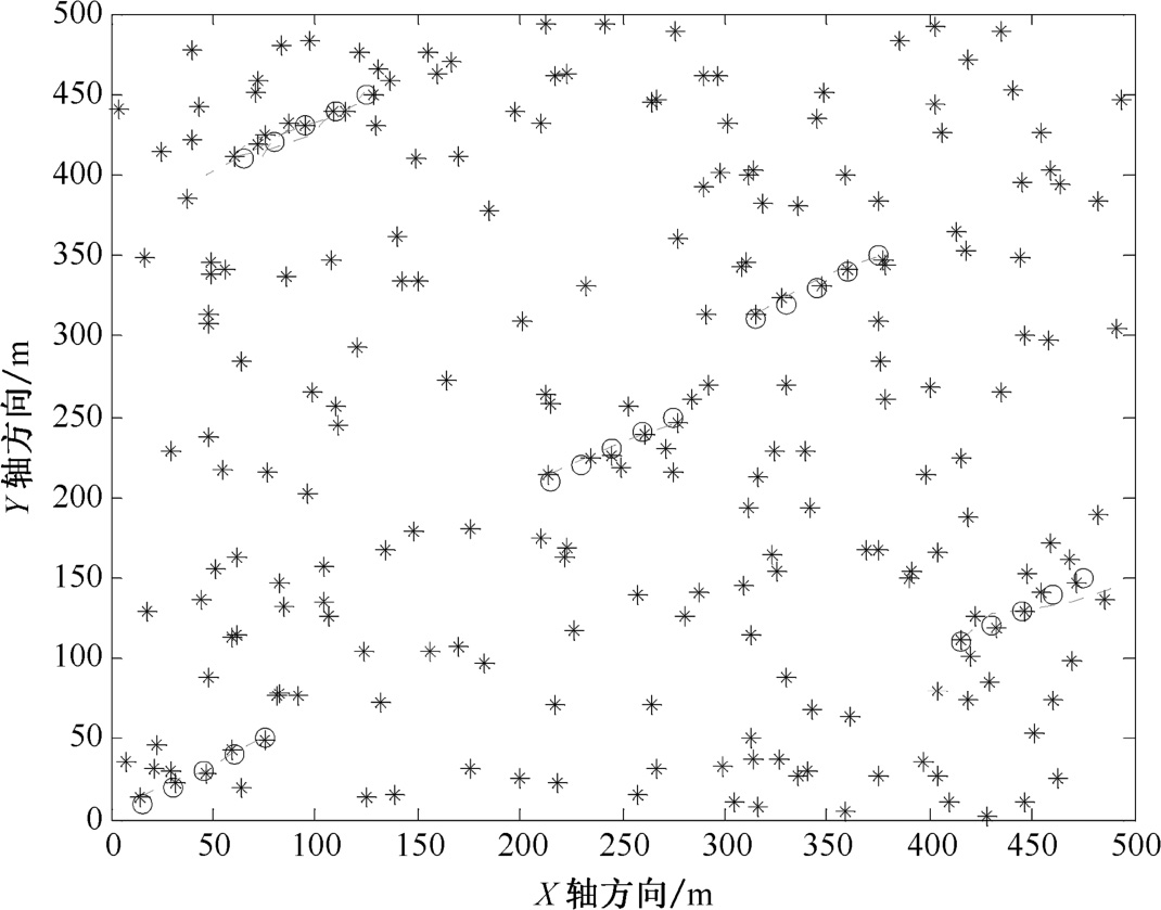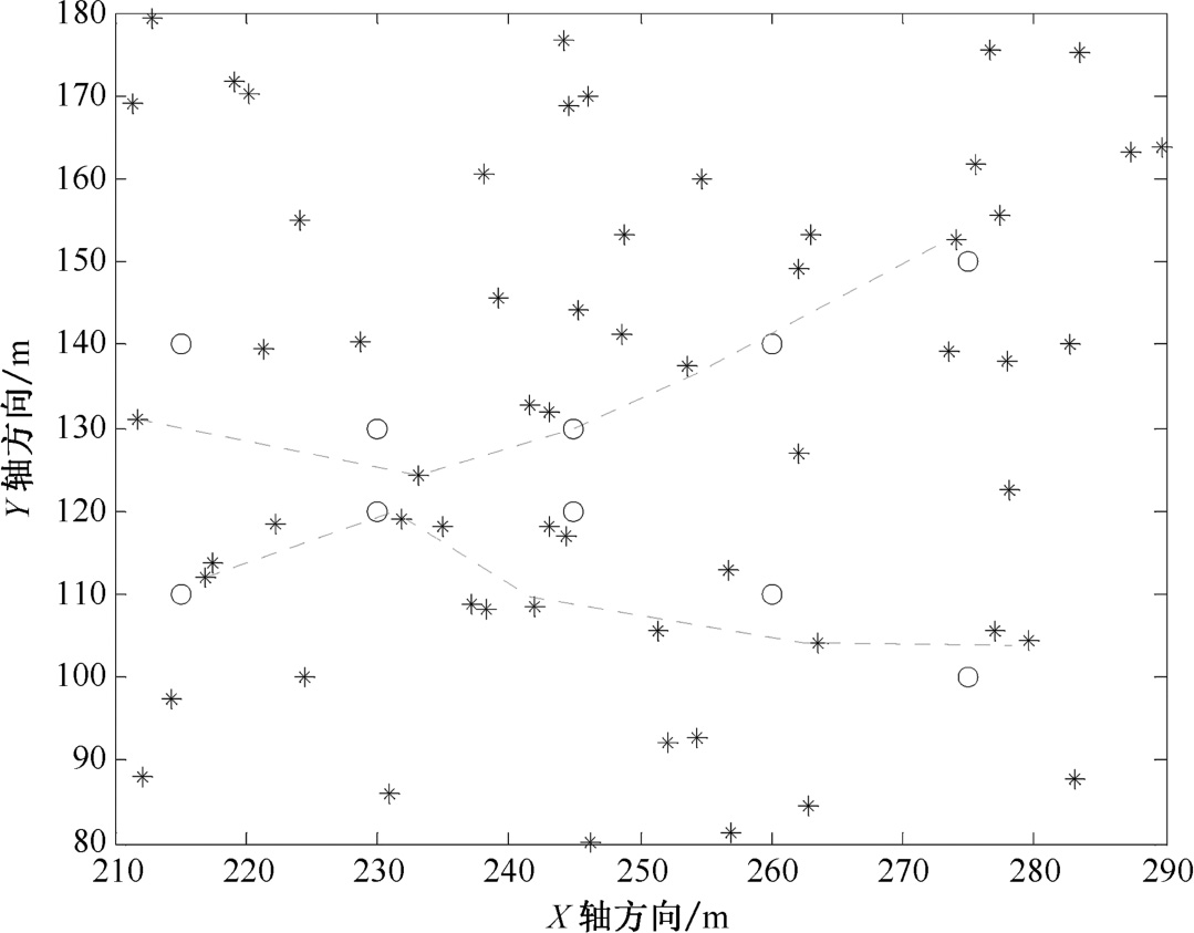 图2.13 密集杂波环境下改进MHT算法航迹起始图