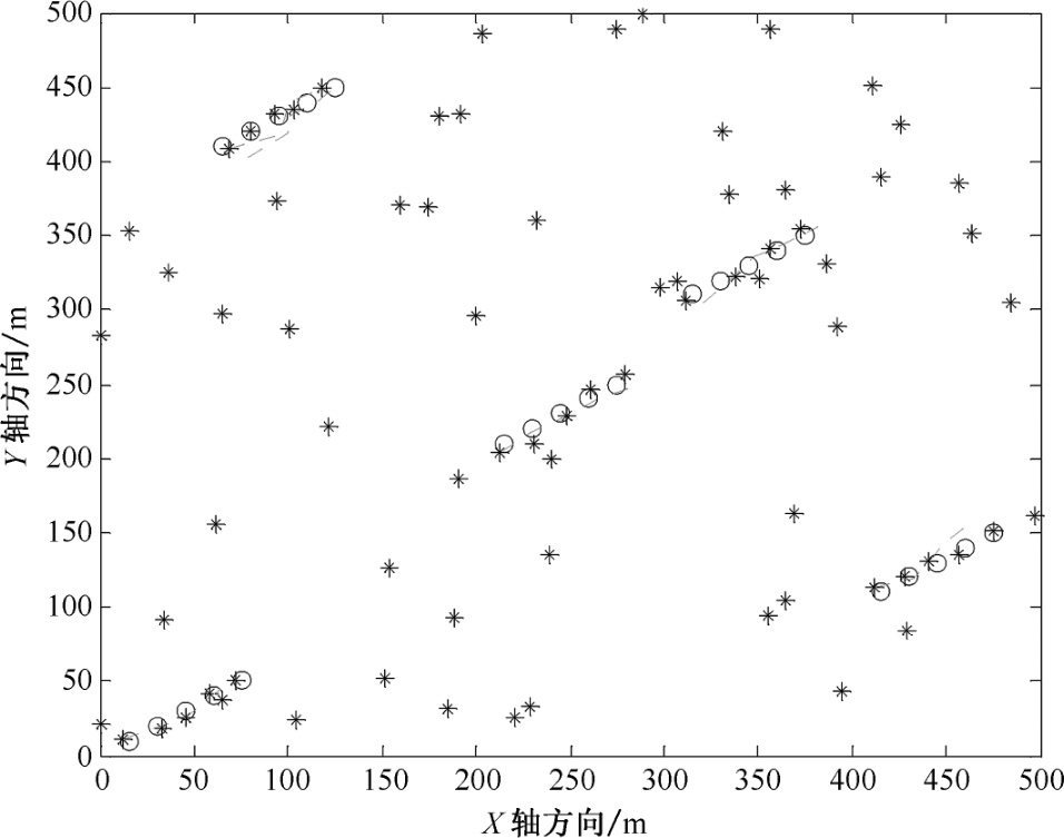 图2.15 稀疏杂波环境下改进MHT算法航迹起始图