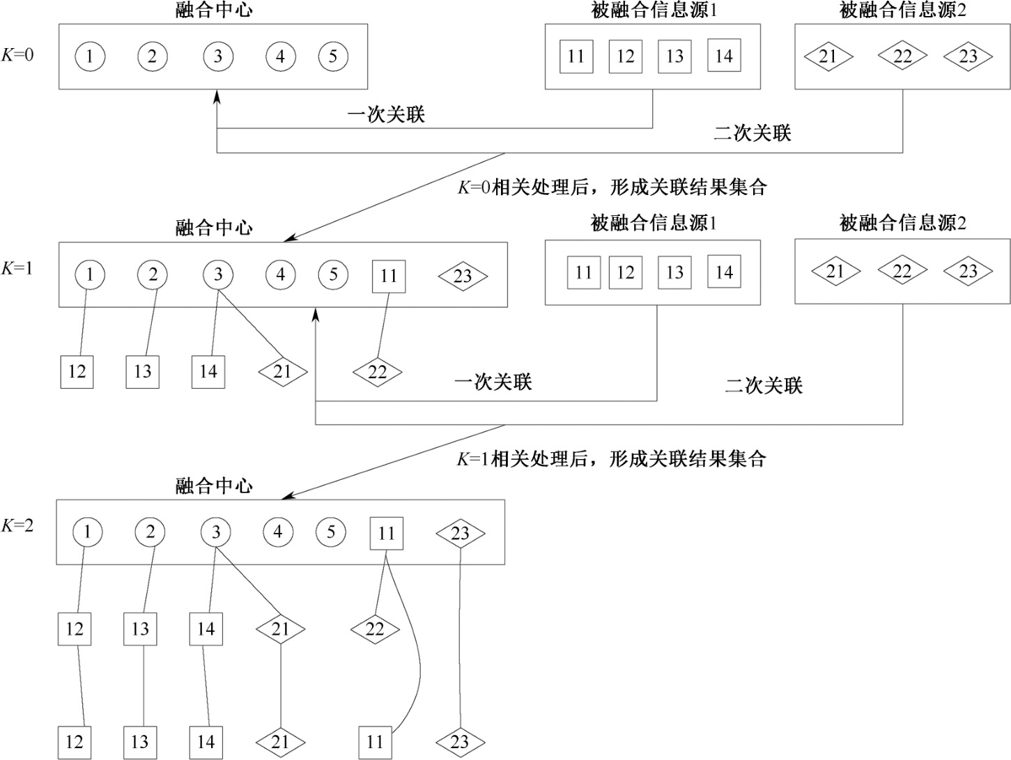 (2)每个信息源输出的目标个数不必相同,即使存在漏检和虚警的情况,每个目标至少有1个点迹或融合航迹;