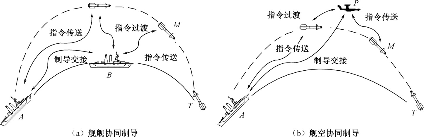 何为制导交接?就是把中制导无线电指令发送权由一个制导平台转交给另一个制导平台(也称协同制导平台)的过程,就是说,舰空导弹中制导段分为两部分,前一部分由发射平台制导,后一段由协同平台制导,制导指令的发送由前一平台转移到协同制导平台,由协同制导平台直接给导弹发送无线电指令。