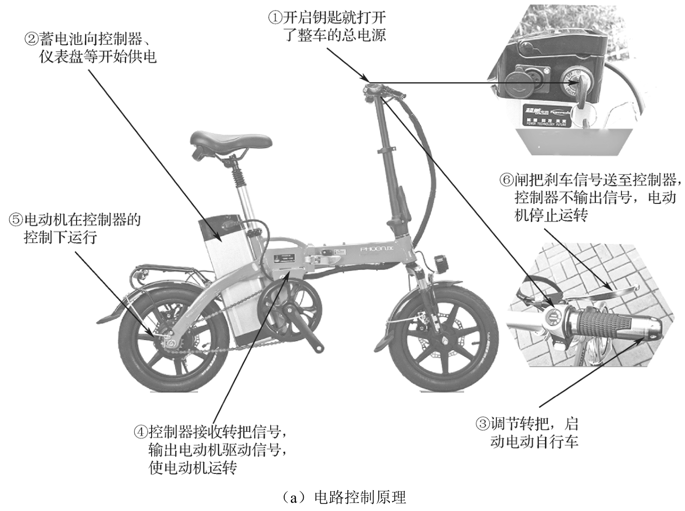 电动部分主要由电动机、控制器、蓄电瓶及充电器等组成,俗称“电动四大件”;另外就是和塑件相互配合的辅助部分,如转把、闸把、显示屏、各种开关、蜂鸣器、灯具等。