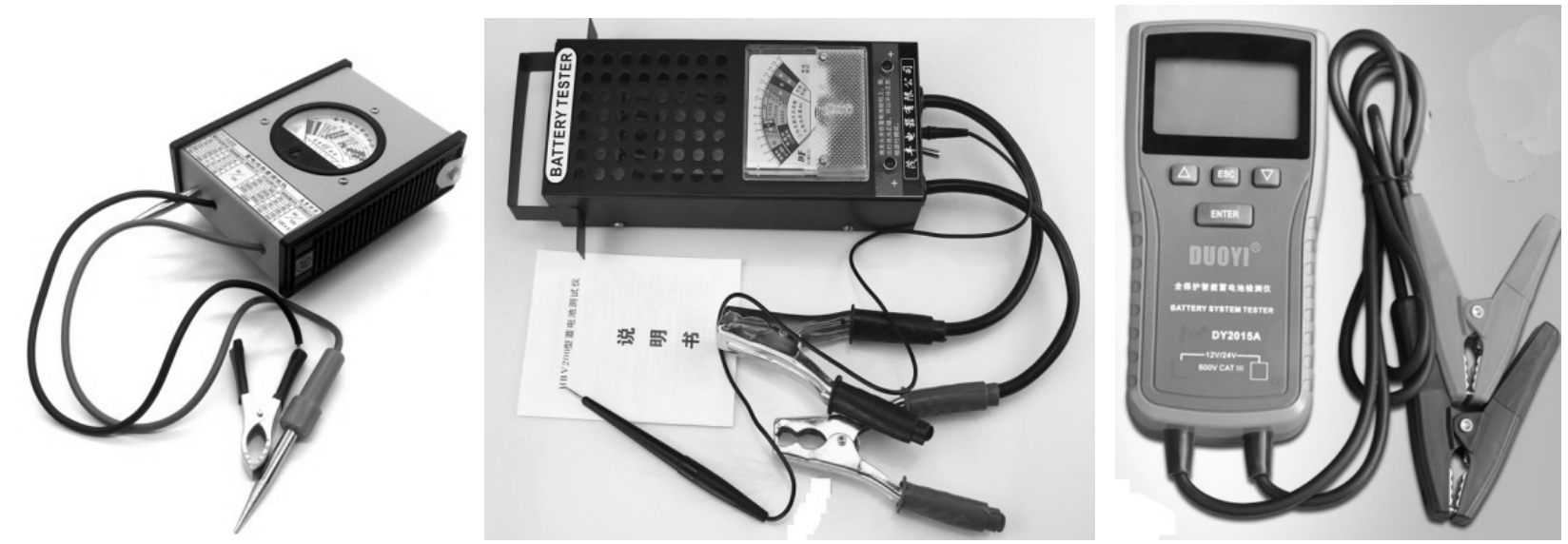 目前,蓄电池容量检测仪表较多,有机械式、数字式等多种规格,其外形如图2-42 所示。仪表一般都附有说明书,可根据说明书进行规范检测与判定。