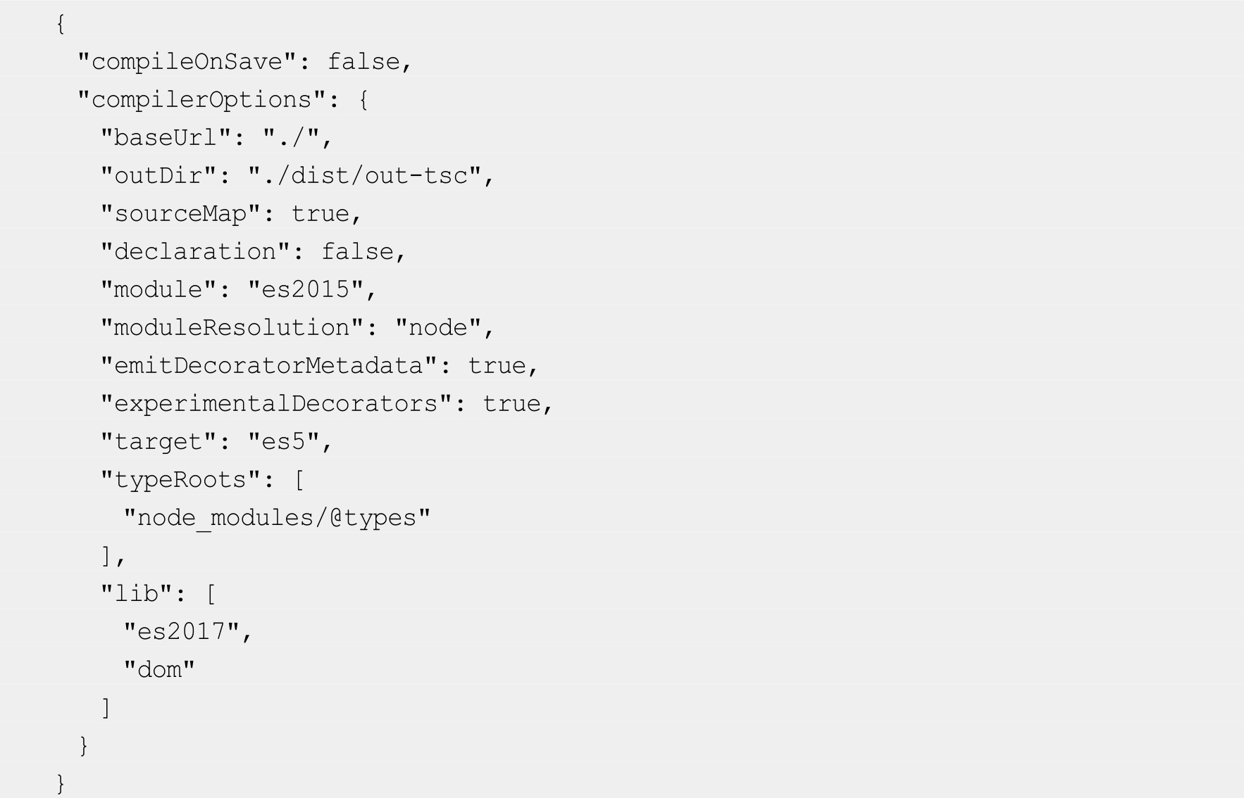 我们知道,TypeScript是Angular应用开发中使用的主语言。它是JavaScript的“方言”之一,为类型安全和工具化而提供了设计期支持。然而,浏览器并不能直接运行TypeScript代码。它得先用tsc编译器将TypeScript代码编译成JavaScript文件,才能被浏览器所运行。因此,编译器需要进行一些配置。