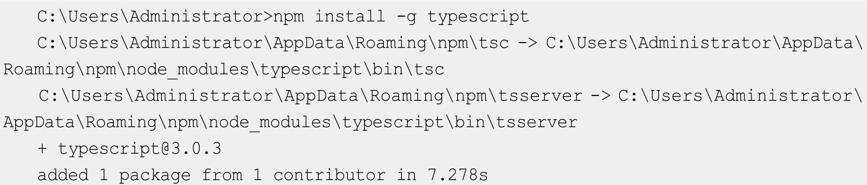 在Angular应用中已经自带了TypeScript库,但是,为了方便在本地进行TypeScript代码的编译,需要进行全局安装。命令如下: