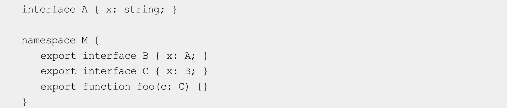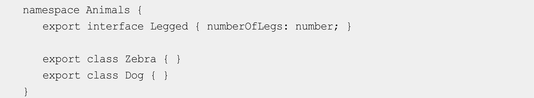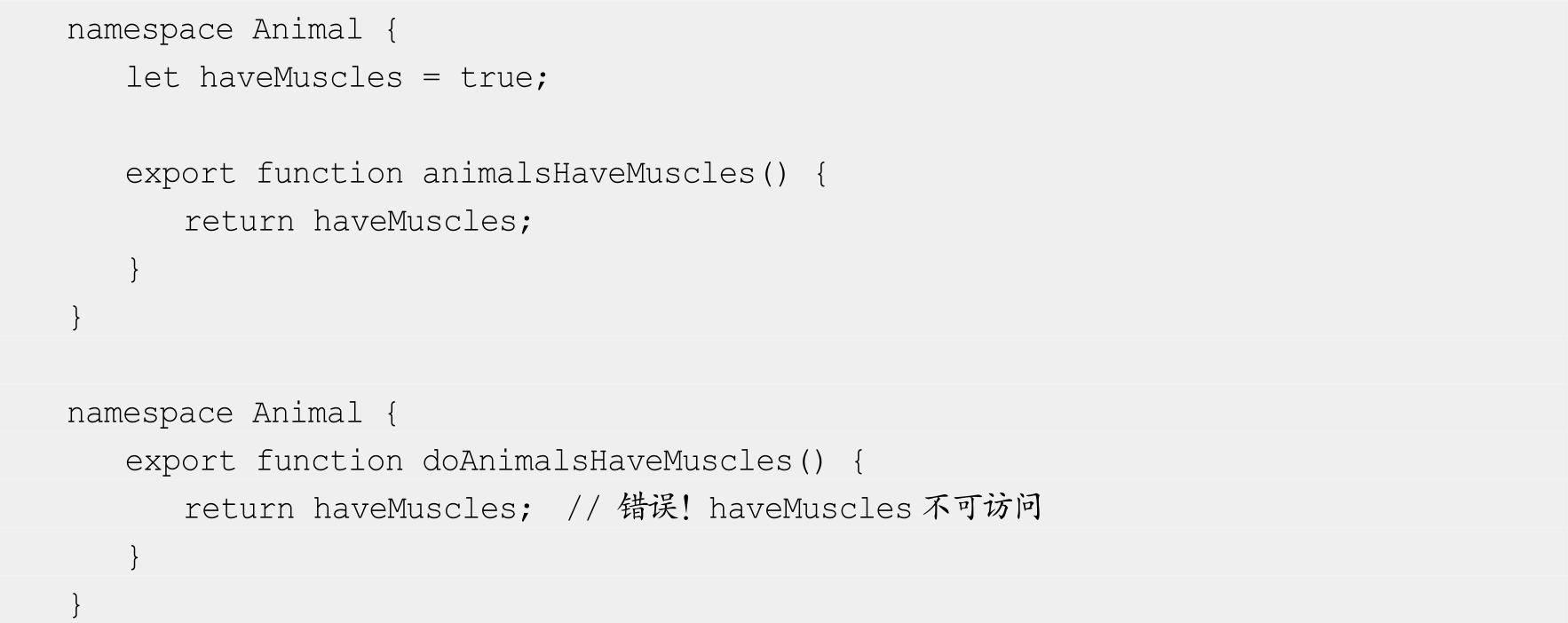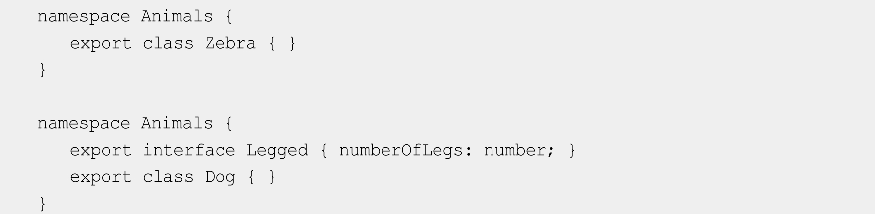 如果要合并命名空间,则要求在每个命名空间中声明的导出接口的类型定义本身已合并,形成一个内部具有合并接口定义的命名空间。