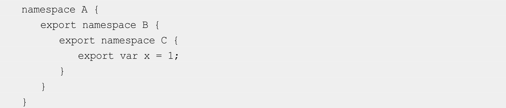 指定具有多个标识符的IdentifierPath的命名空间声明等同于一系列嵌套的单标识符命名空间声明,其中,除最外层外的所有标识符都自动导出。例如: