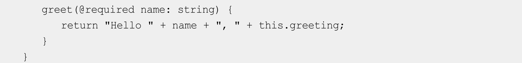 下面定义了参数装饰器@required,并将其应用在DecoratorGreeter类方法的一个参数上。