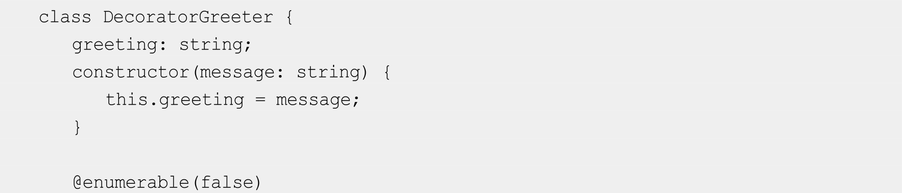 下面是一个将装饰器@enumerable应用于DecoratorGreeter类上的例子。