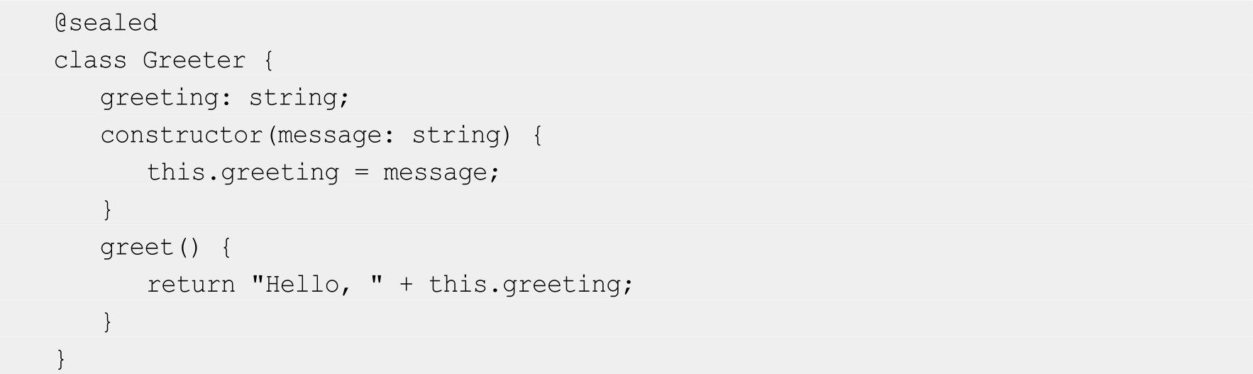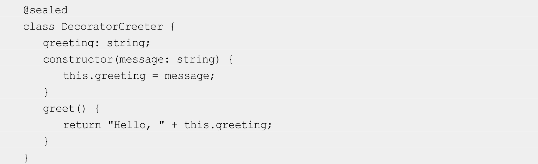 下面是一个将类装饰器@sealed应用于DecoratorGreeter 类上的例子。