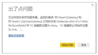 注意: 在真实环境中,有时1表内有重复值,会导致在联接时报错。此时需要检查1表的值是否出现重复值,比如,在下载时确保维度表里的值是非重复的。否则维度表就不是1表(1表中的“1”代表没有重复值)。不可以与事实表建立正常的一对多关系,如图3.3.6所示。