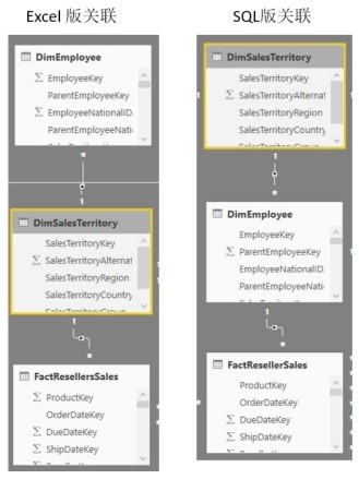 此外,Excel版数据库中的员工表与线下销售表的关系不正确,应该改为SQL表中的关系,如图3.3.10所示。这里要提醒读者,在真实环境中,用户应该对数据关系有正确的理解,而不可完全依赖自动关联功能。