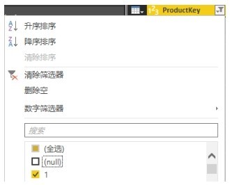 (3)单击“ProductKey”列或者任意一列,取消勾选“null”复选框,如图3.3.9所示。