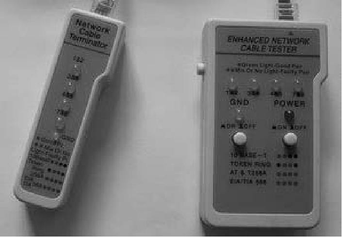 网络电缆测试仪主要用于对双绞线或同轴电缆进行测试和故障诊断,包括对电缆故障点定位,以及测试电缆长度、环路损耗、传输时延等。每一根网线做好之后,必须通过测试。图2.7所示是一款网络电缆测试仪,能够快速、准确地测试高性能的5e类和6类电缆链路,可对高速铜缆提供全面的测试,验证解决方案。