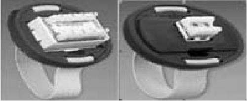 由于把网线的4对芯线卡入信息模块的过程是比较费力的,而且信息模块容易划伤手,于是专门设计开发了一种打线保护装置,这样不但可以方便地把网线卡入信息模块中,还可以起到隔离手掌、保护手的作用,如图2.6所示。注意,上面嵌套的是信息模块,下面的部分才是保护装置。
