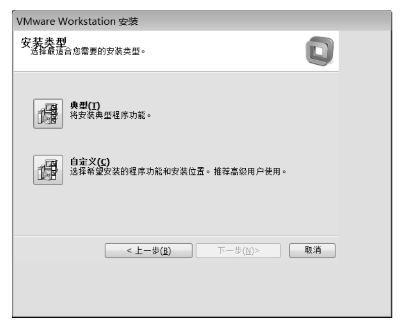 唯一值得一提的是在安装过程中应选择何种安装类型,有典型安装和自定义安装两种,如图 2-1所示,建议初学者选择典型安装。