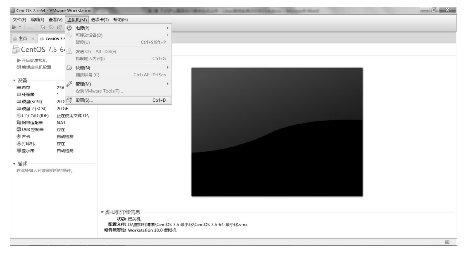 这时如果还想调整虚拟机的硬件配置,则可以选择“虚拟机”→“设置”命令,重新进入“硬件”界面,如图 2-14所示。