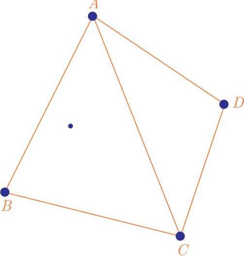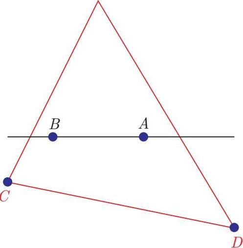 A 、 B 两点在其他三点构成的三角形内,则 ABCD 可以构成一个凸四边形。