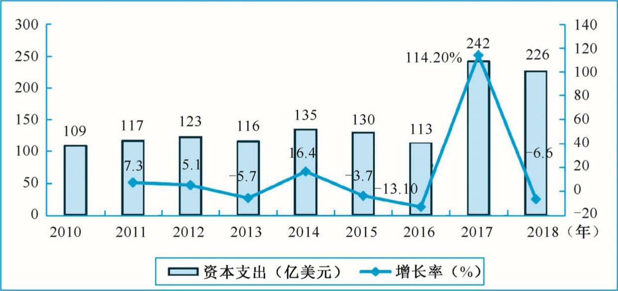 图1-7 2010—2018年三星电子资本支出情况