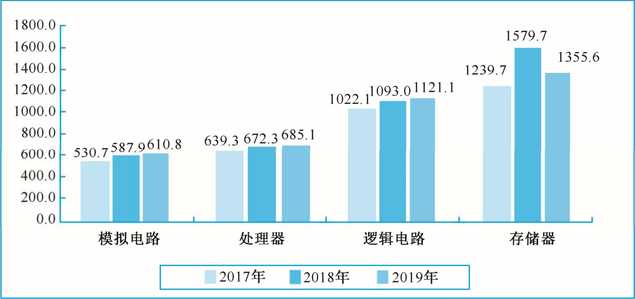图1-4 2017—2019年全球集成电路产品市场规模(亿美元)