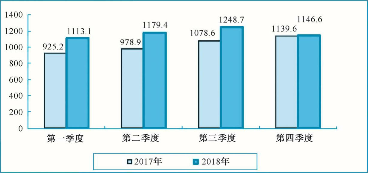 从 2018 年各个季度的市场情况来看,前三季度市场规模均保持较快增长,同比2017年分别增长20.3%、20.5%和15.8%,但是受存储器价格下跌和市场需求动力不足的影响,第四季度增长逐渐放缓,相比前三季度出现小幅下降,如图1-2所示。