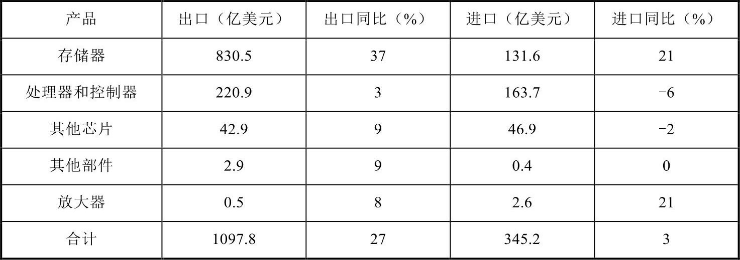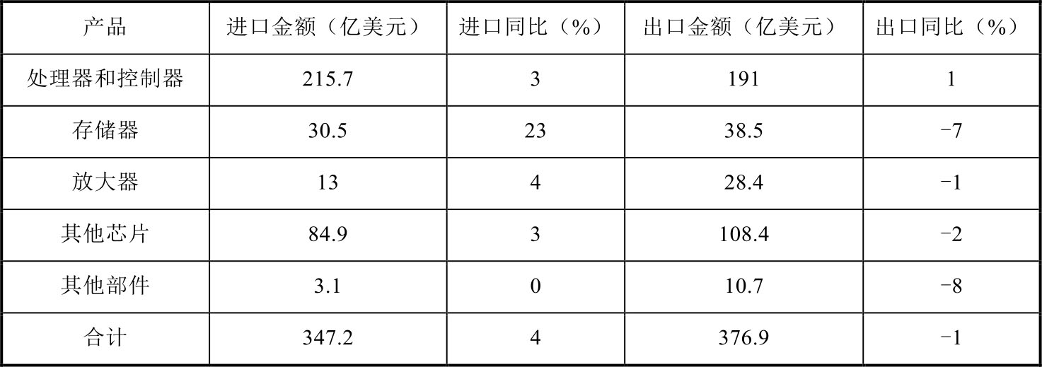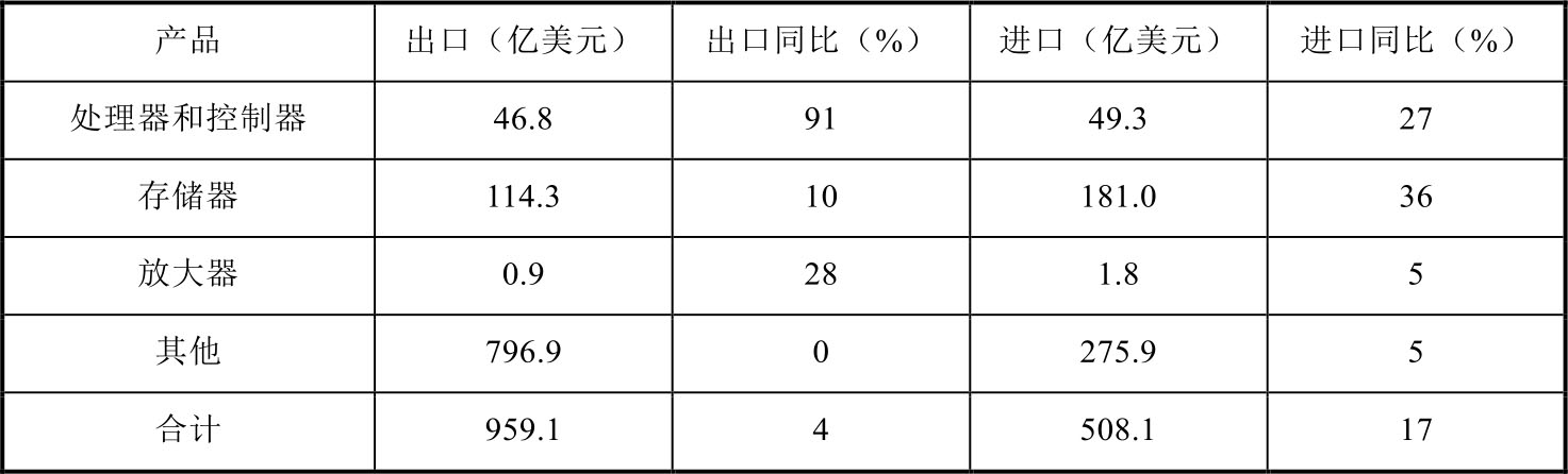 表1-6 2018年美国集成电路产品进出口情况