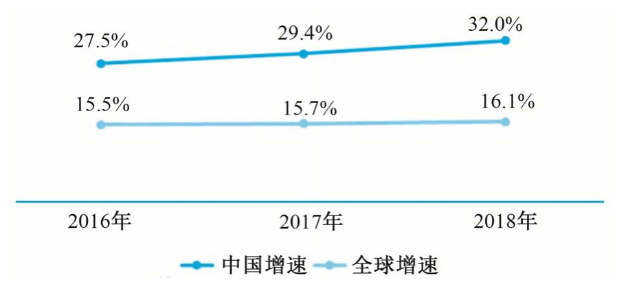 图1-5 2016—2018年全球和我国政府大数据市场增速对比