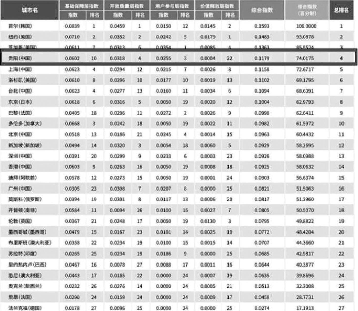 政府大数据目前主要包含安防、公共信用、政府数据开放共享、智慧城市四个领域。安防行业持续火热,据统计,近三年年复合增长率超过30%,资本市场活跃。公共信用数字化市场将进入新一轮增长期,未来三年将保持超过20%的增长。全国多地市政府建设政府数据开放共享平台,推动了政府大数据应用,加速了政府数字化转型进程。超过500个在建的智慧城市项目从城市数据的深度获取和共享、城市治理生态系统、城市综合治理水平方面推动了政府大数据市场和发展。2016—2018年全球政府大数据市场规模、我国政府大数据市场规模,以及全球与我国政府大数据市场增速对比如图1-3、图1-4、图1-5所示。在全球27个重要城市中,贵阳公共数据可持续开放综合指数名列第4,超过洛杉矶、东京、巴黎、新加坡等国际著名城市,如表1-2所示。