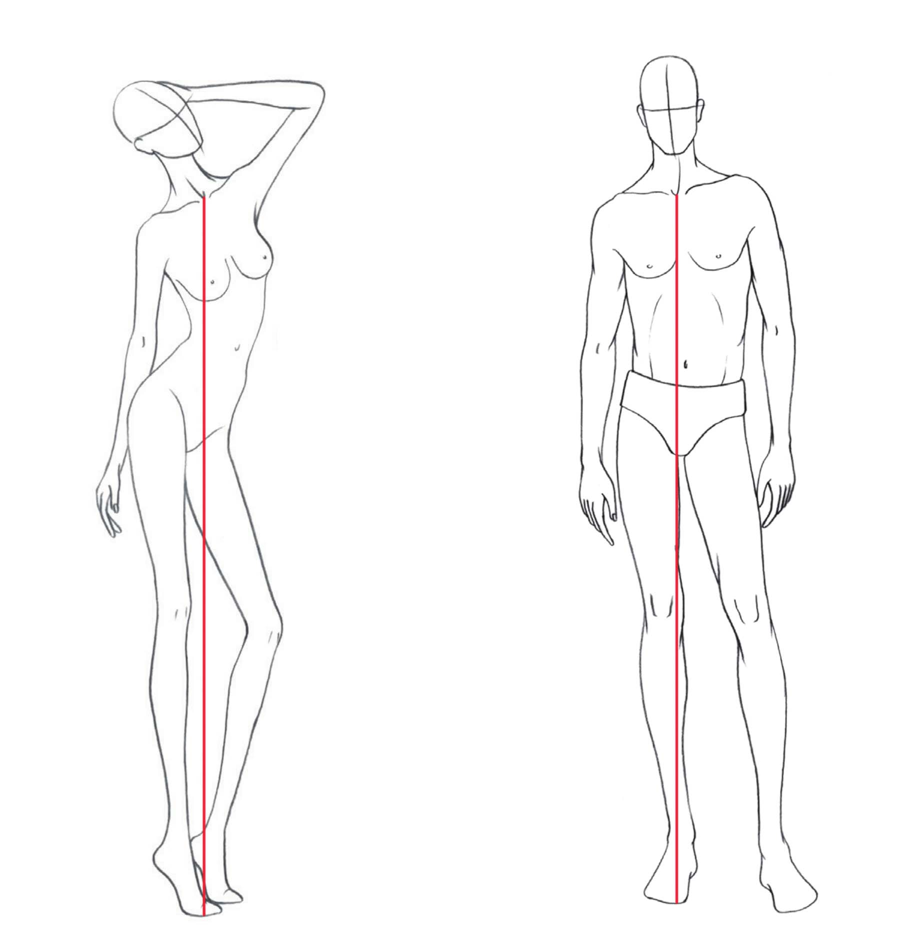 重心线是保持人物平衡的一条无形的线。重心线从锁骨中间为起点,然后向地面垂直地绘制出一条垂线。人体无论保持什么姿势,重心线都不会随之产生变化,它始终垂直于地面。