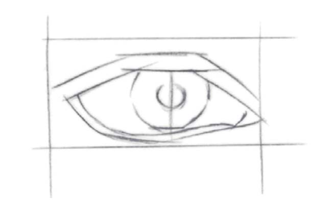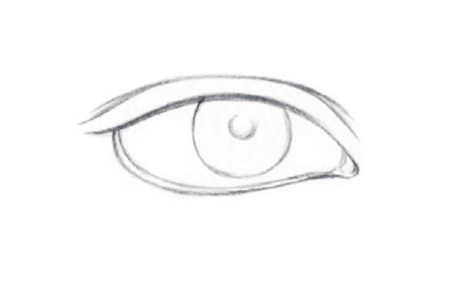 绘制出眼睛的大致轮廓,细化眼睛的结构。然后画出眼球与瞳孔的形状。