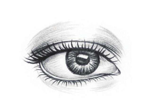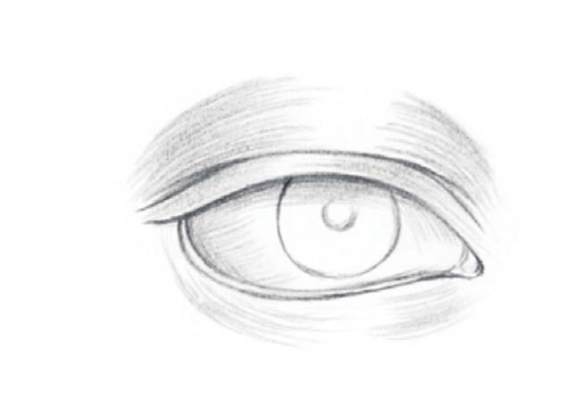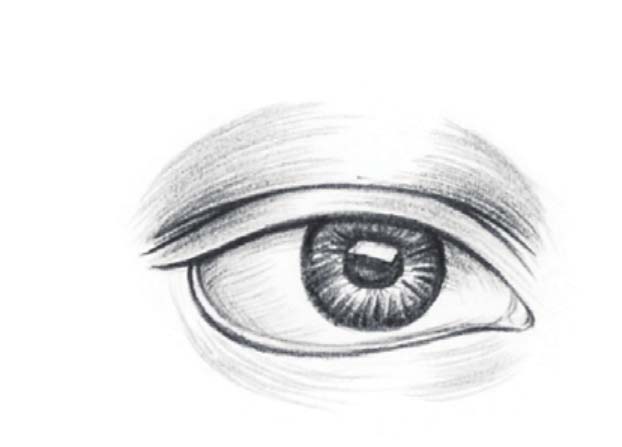 塑造眼睛的明暗关系,绘制上眼睑对眼白产生的投影,表现出眼白的体积。