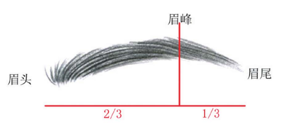 用直线确定出眉毛的走向与比例,注意眉尾比眉头更细。