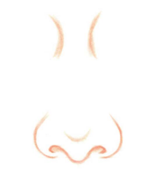 根据中轴线绘制左右对称的鼻翼形状,然后绘制鼻头底部和鼻孔形状。