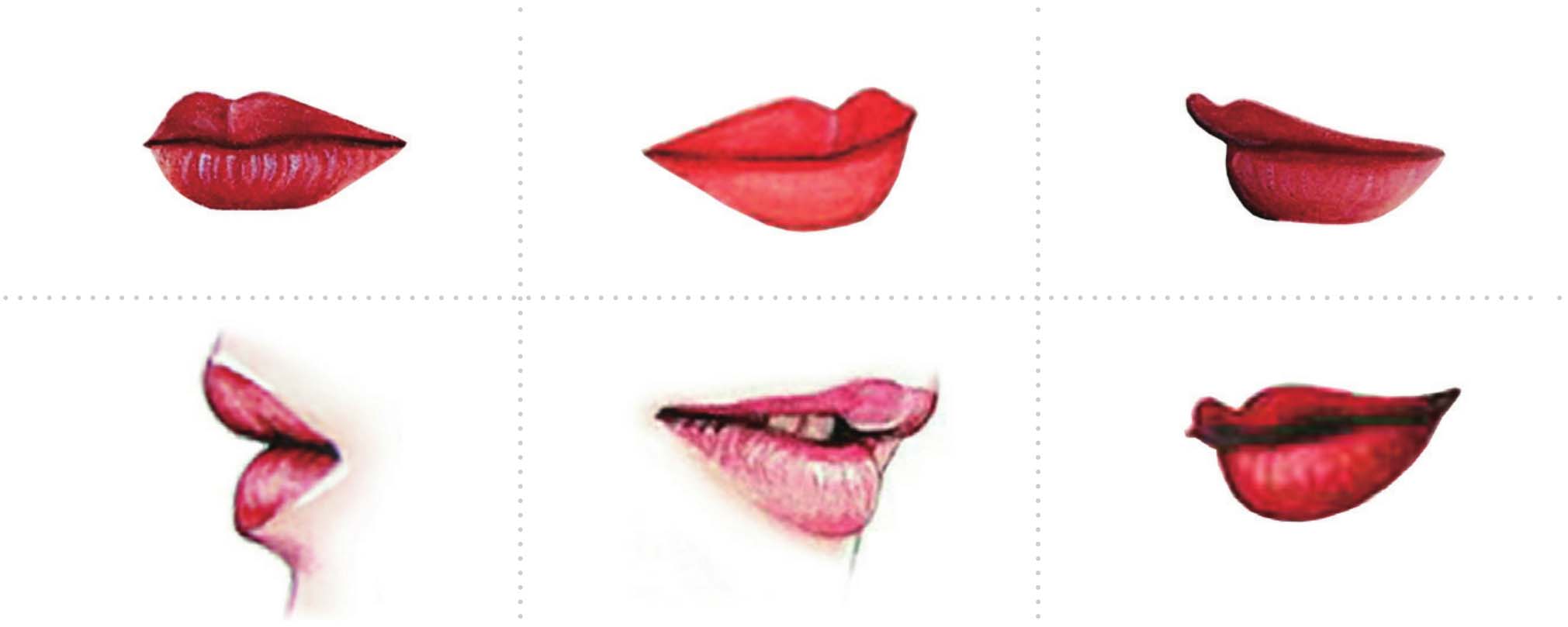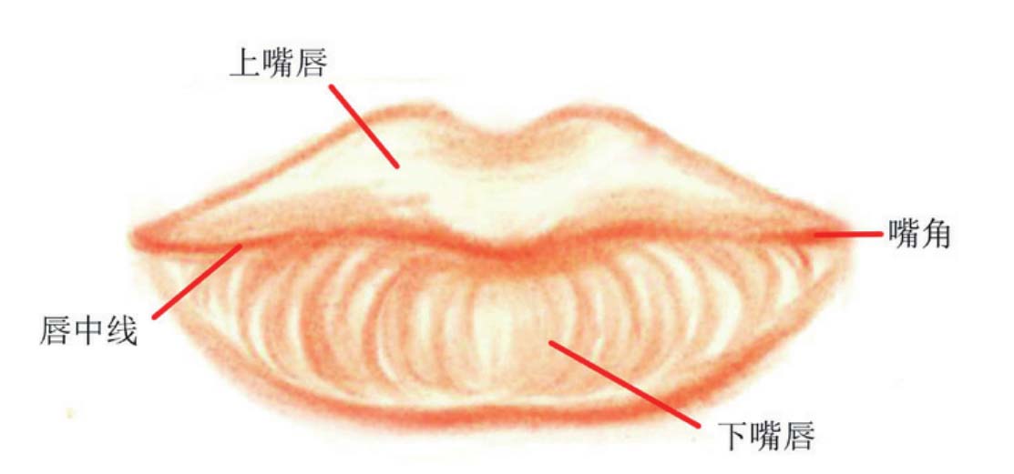 嘴唇是较为标准的菱形,包括上嘴唇、唇中线、嘴角、下嘴唇等结构。为了塑造嘴唇柔软的质感,绘制时用笔可以放松一些,着重强调嘴唇的立体感。