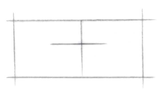 绘制出横向的矩形,在正中间画出十字交叉的两条直线。