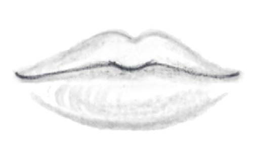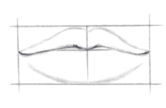 根据唇珠、嘴角的位置,绘制出嘴唇的轮廓,注意唇中缝的形状,下嘴唇一般比上嘴唇更丰满。