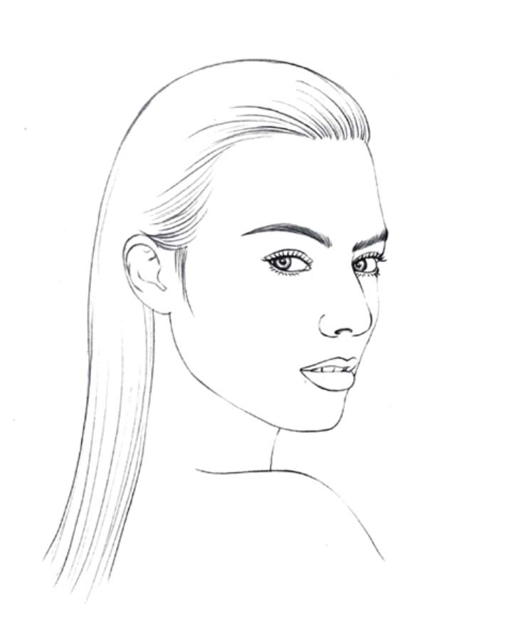 绘制五官轮廓,根据发际线的位置绘制出发型的外轮廓。