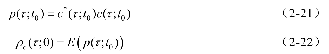 设信道在时刻 t 0 的冲激响应为 c ( t ; t 0 ), c ( t ; t 0 )的傅里叶变换 C (j ω ; t 0 )是信道的瞬时频率响应, C (j ω ; t 0 )又称信道的时变转移函数。若 c ( t ; t 0 )是广义平稳的,它的自相关函数为 [5]