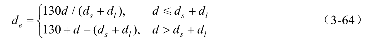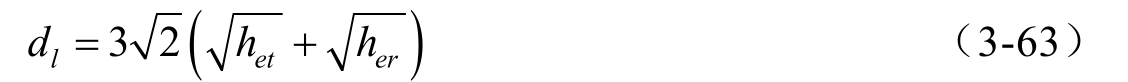 式中,天线等效高度 h et 和 h er 的单位取m, d s 和 d l 的单位为km。研究人员发现,当链路的大圆距离 d 比 d s + d l 略大时传输损耗的小时中值的慢衰落最严重,NBS-TN-101人为规定链路的等效距离 d e 为