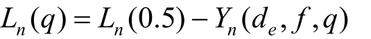 Y n ( d e , f , q )是对于等效距离为 d e 、频率为 f 的链路,当传播可靠度为 q 时所估计的传输损耗 L n ( q )与 L n (0.5)的差值。于是,根据链路所使用的频率和气候区,查阅相关图表得到 Y n ( d e , f , q )后即可进行链路长期传输损耗预报。