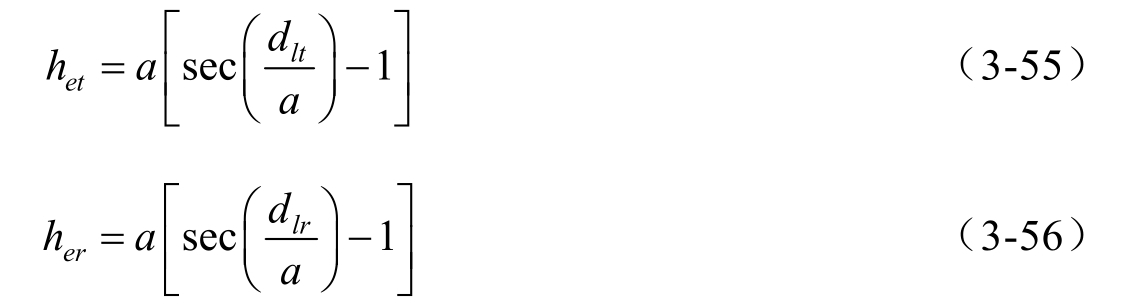 d lt 和 d lr 为发、收两站到最高障碍点的视距大圆距离,注意单位应与等效地球半径 a 同取为m或km。